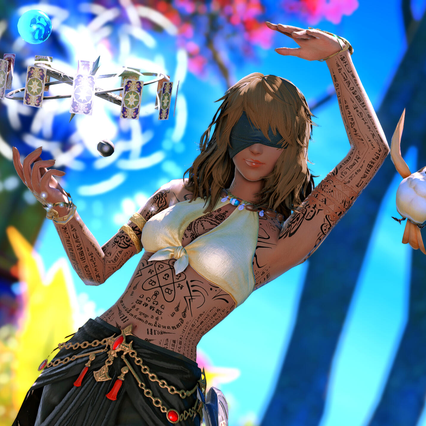 The quiet, yet sweethearted woman did not rest on her laurels. Her notable achievements included ushering in peace among Jeweled Blades, uncovering a plot of occultists tied to the star Ophiuchus, assisting soldiers within the Dalmascan Resistance, and banishing a highly-ranked Voidsent.Despite losing her ability to see normally after her battle with Ophiuchus, Saeyara's charisma and strong aethersight -- matched with her mysterious abilities and beautiful features, simply added to her allure.With the Garleans pushed into their territory, and the Telophoroi running rampant, Saeyara issued her next goal: to bring comfort and safety to the victims on both sides of the war.The exotic, jewelry-laden Thavnairian seeress was no longer a shell living inside a chamber. Her conviction overpowered her lack of sight. The beautiful almond-toned woman ventured forth to help those in need...